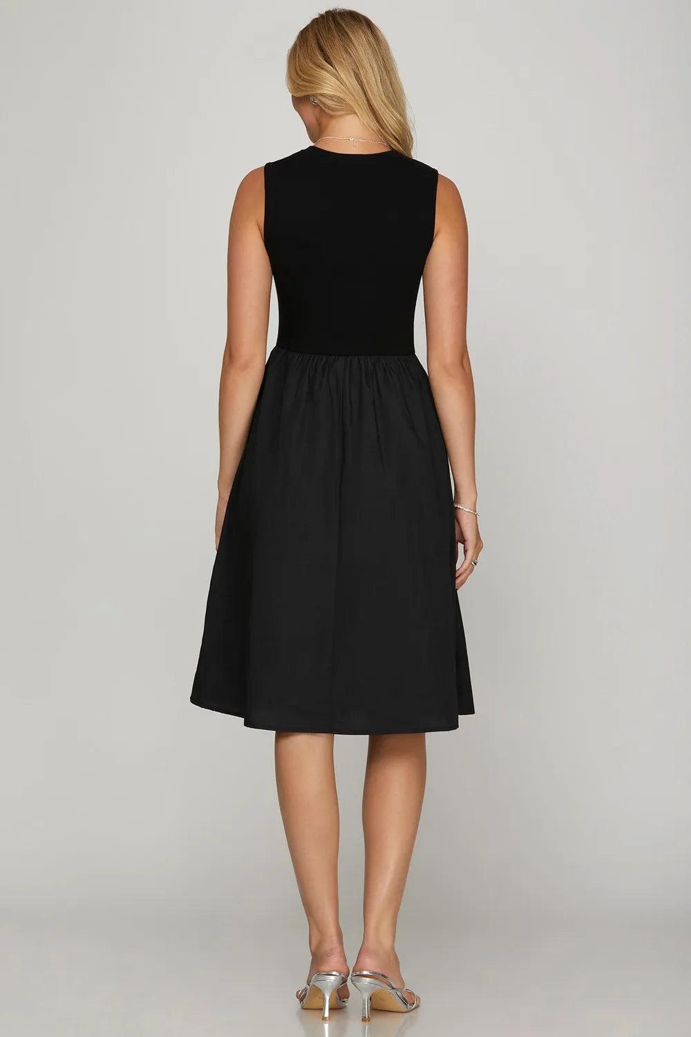 She + Sky Full Size Sleeveless Poplin Woven Midi Dress with Pockets Plus Size