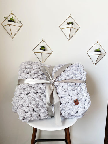 Chunky Knit Blanket in Light Gray