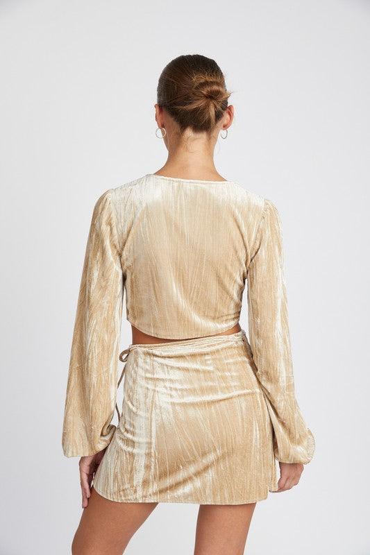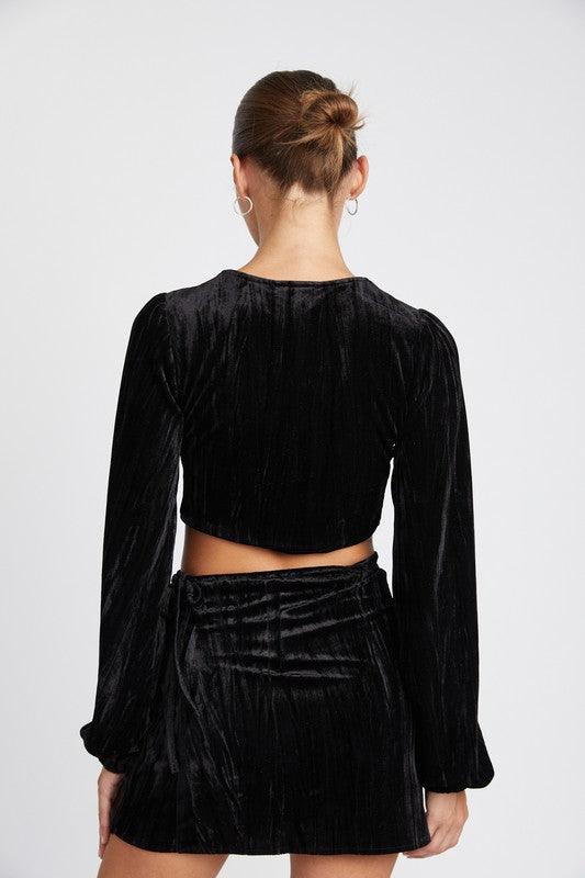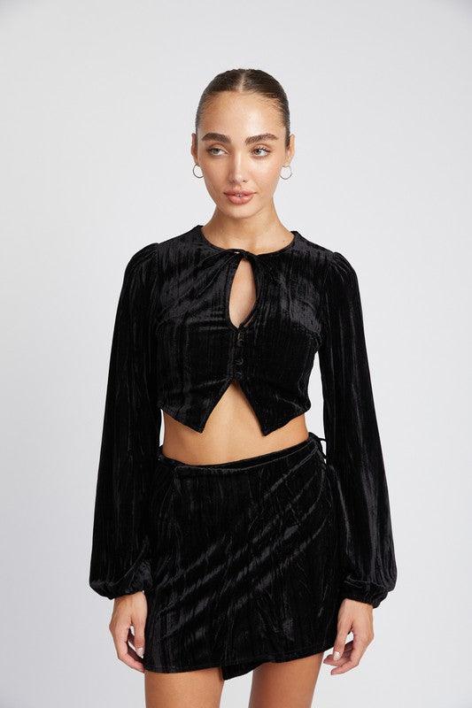 Velvet Allure: Long Sleeve Keyhole Crop Top