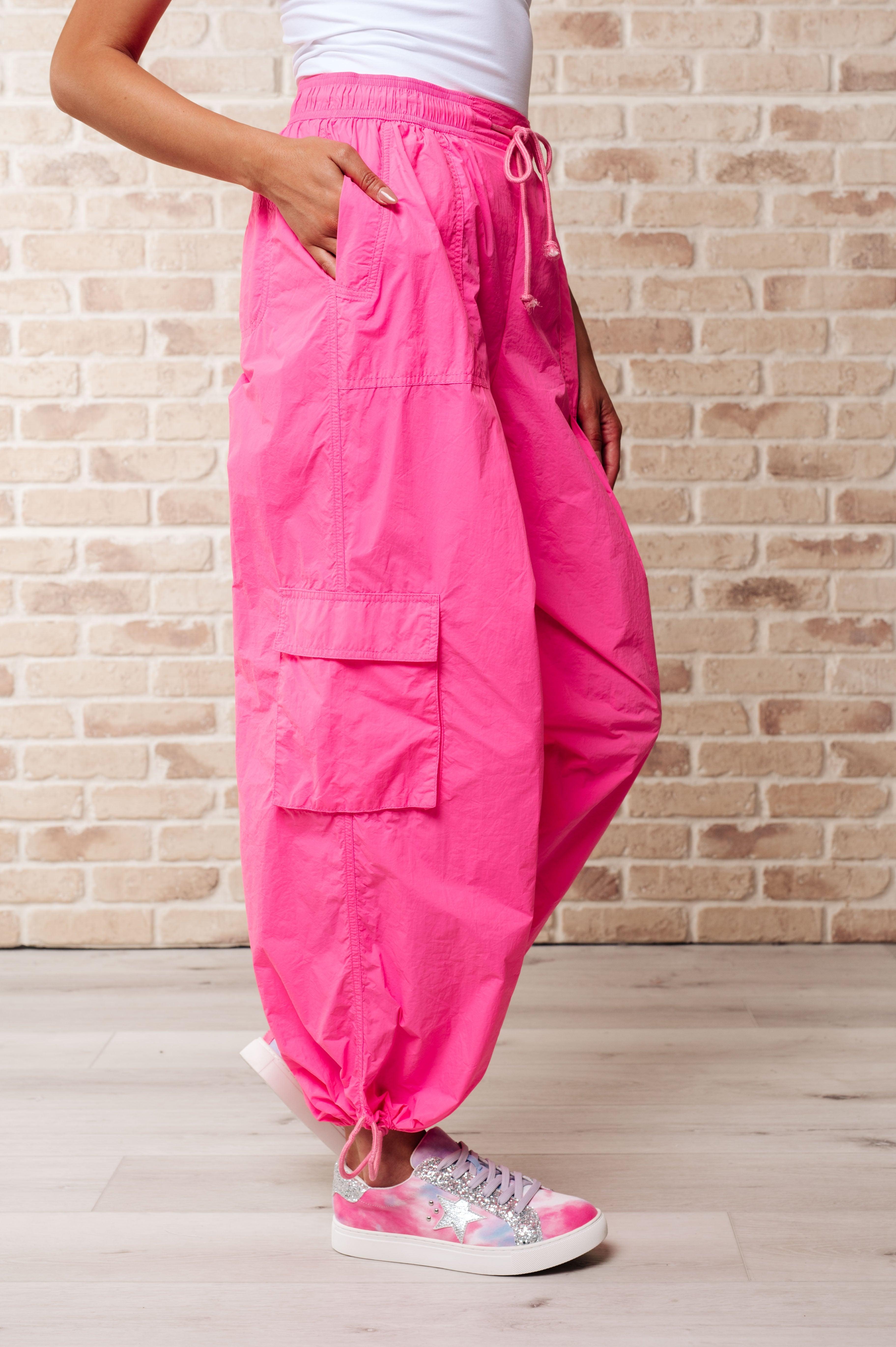 Be a fashion frontrunner in our First Place Cargo Pants! Made with windbreaker material for all-weather wear, these pants feature a functional drawstring, side and cargo pockets, and drawstrings at the cuffs. With added back pockets, you'll stay one step ahead while looking effortlessly cool.
