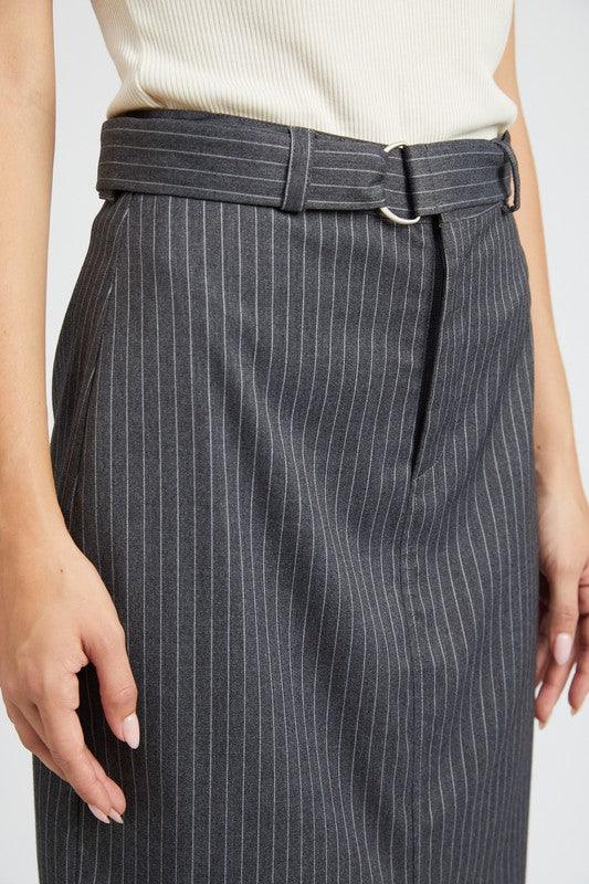Power Move: Pinstripe Midi Skirt with Slit