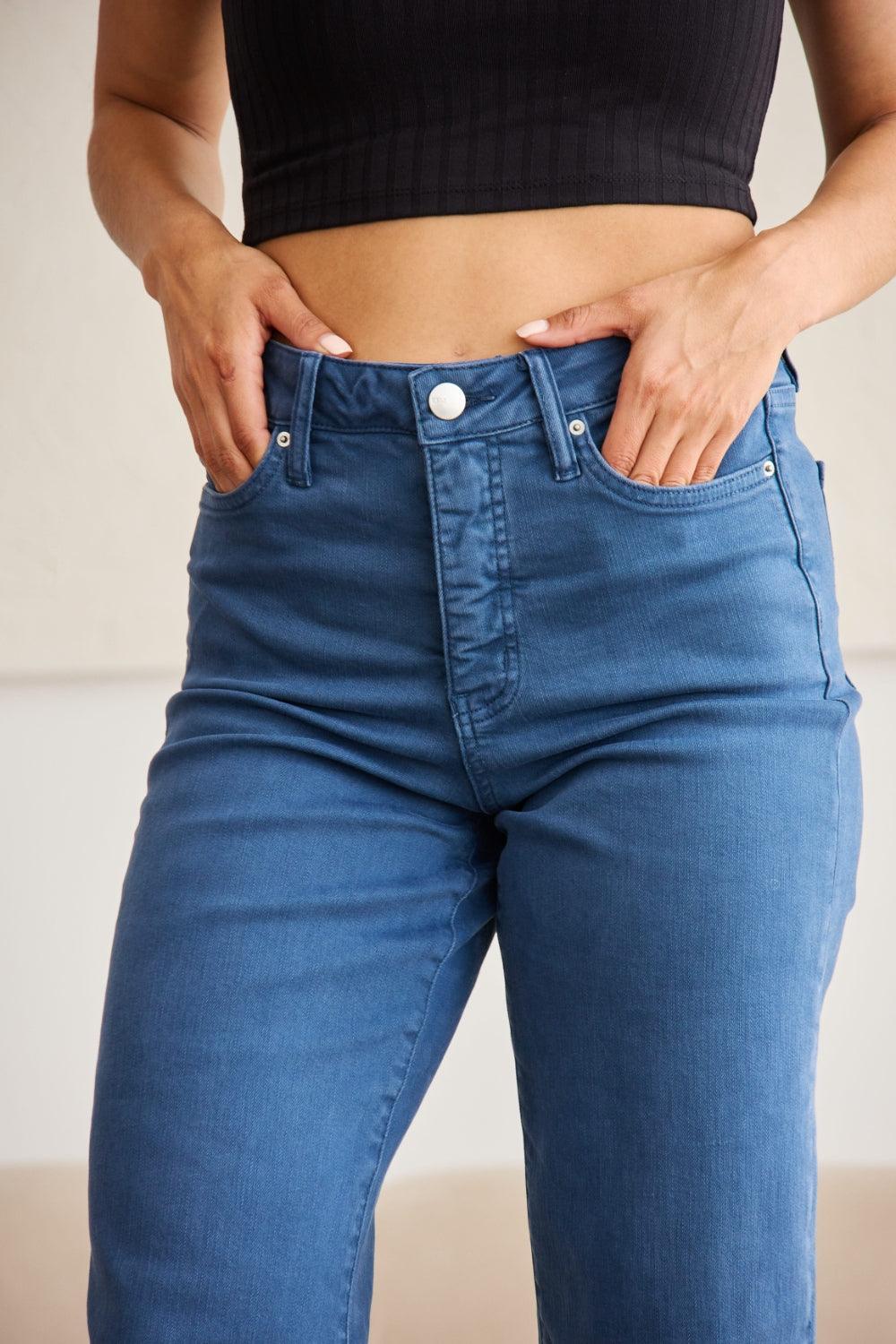 RFM Crop Chloe Tummy Control High Waist Raw Hem Jeans