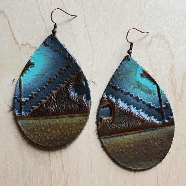 Leather Teardrop Earrings in Blue Navajo