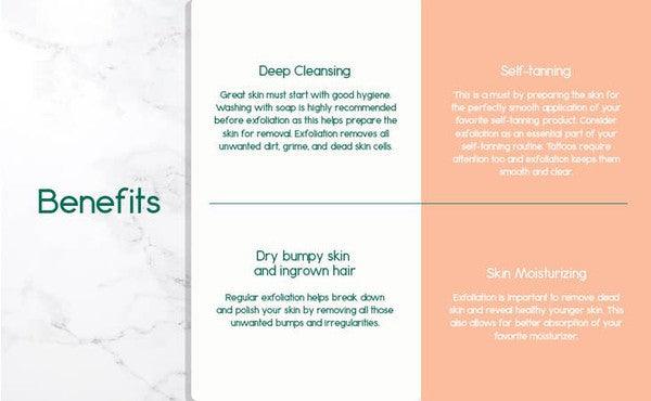 Deep Cleansing. Great skin must start with good hygiene. Washing with soap is highly recommended before exfoliation, as this helps prepare the skin for removal. Exfoliation removes all unwanted dirt, grime, and dead skin cells.