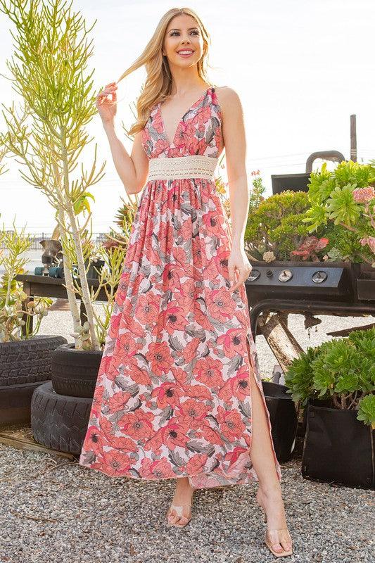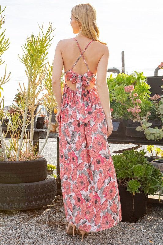 Get ready to turn heads with our Tie Back Floral Maxi Dress! With its eye-catching floral print and unique tie-back design, this dress is perfect for any occasion. Keep it playful and stylish with this must-have piece.