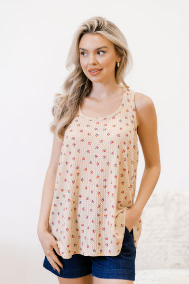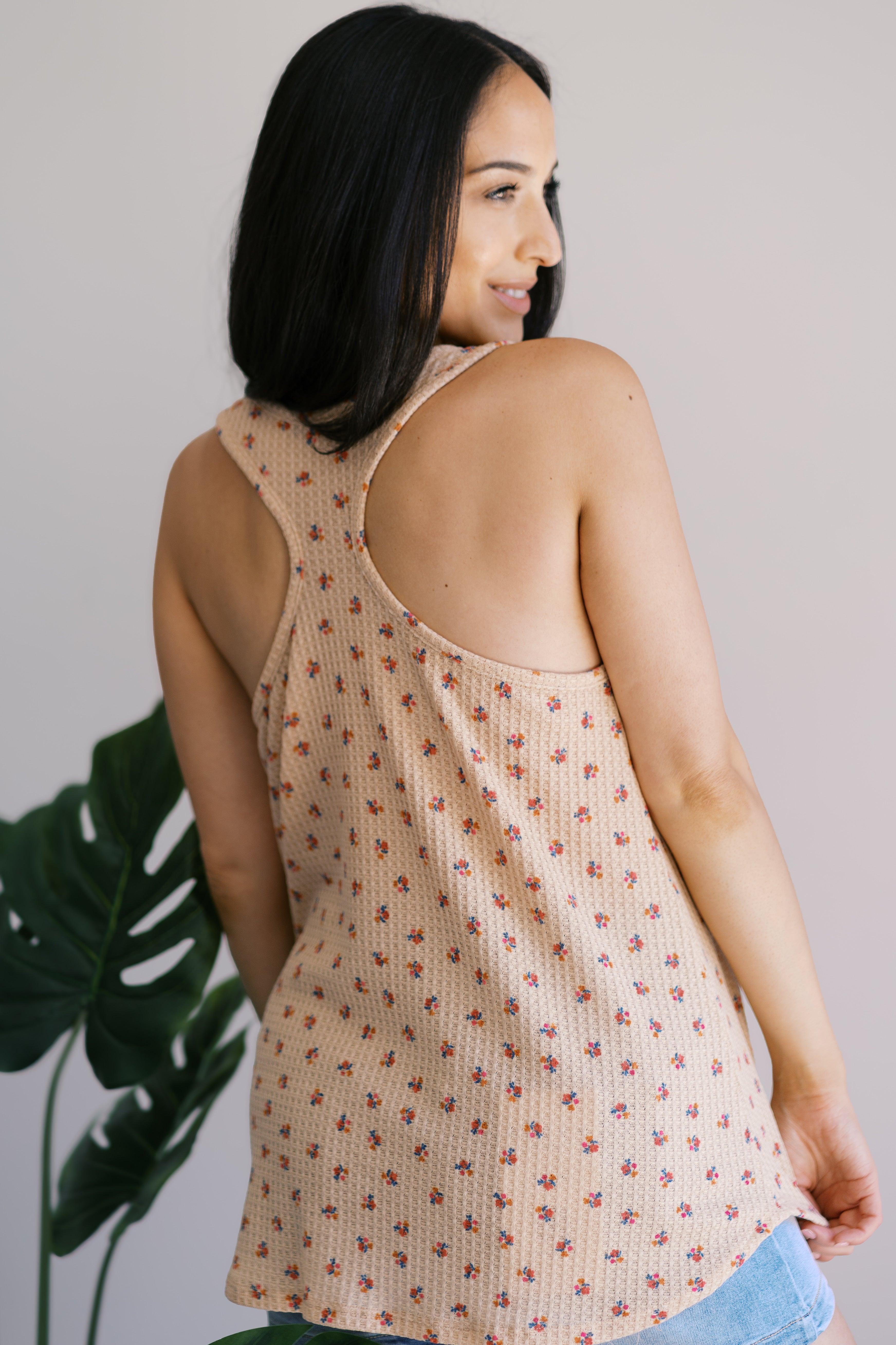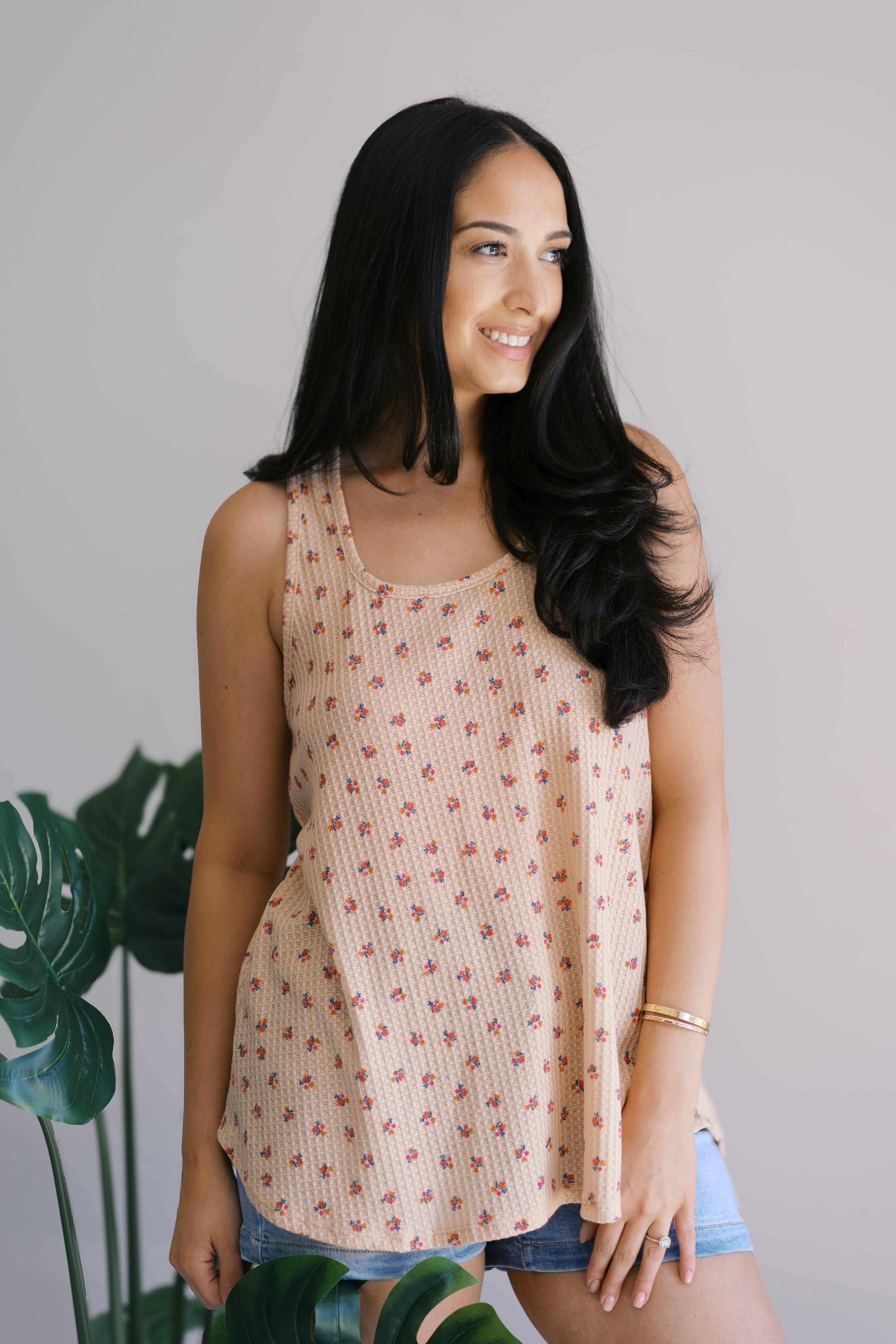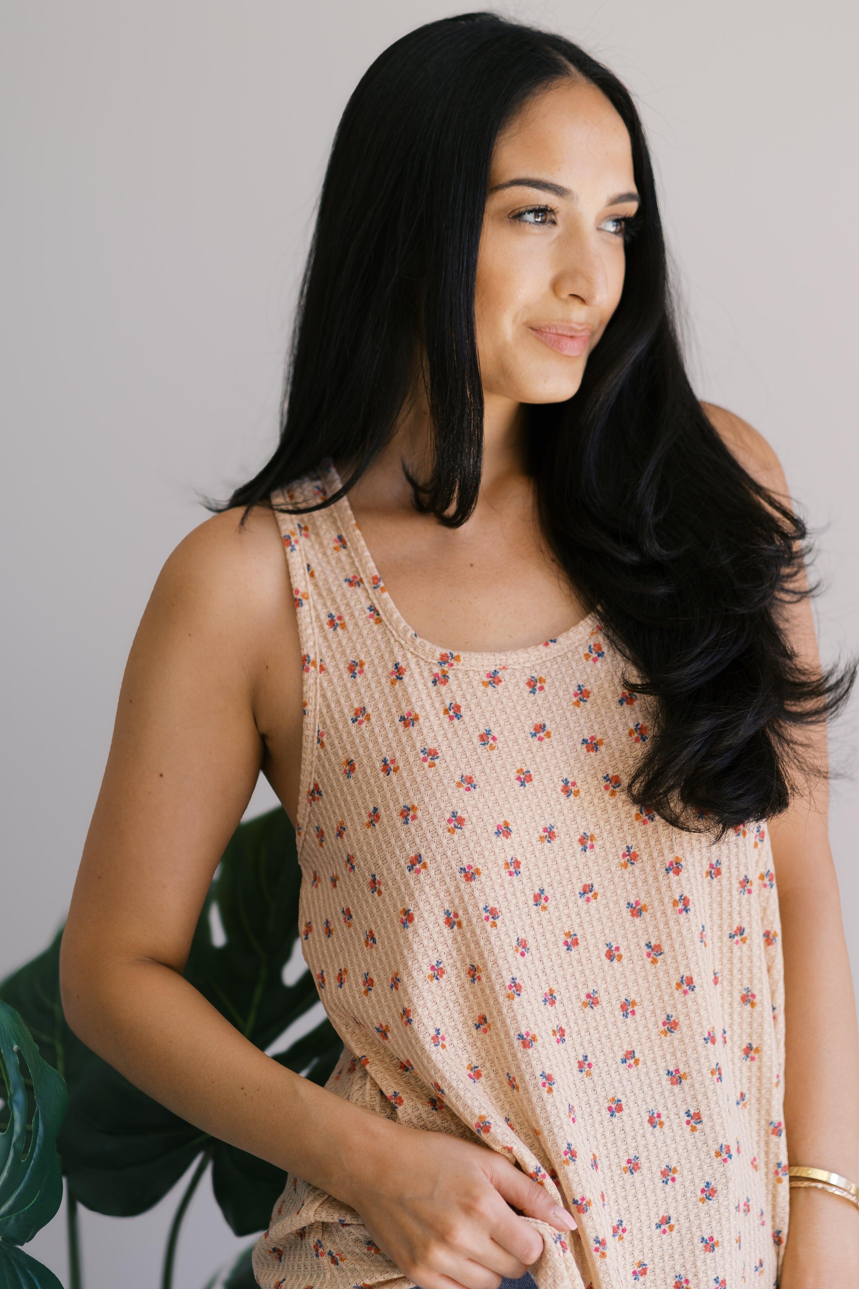 Add a touch of nature to your wardrobe with the Tiny Blooms Tank. Featuring a delicate floral pattern, this tank top is perfect for a sunny day out. Embrace your playful side and let your style blossom in this unique and charming tank top, blooming with personality!