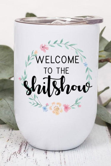 12 oz Stainless Steel Wine Tumbler. Image printed on both sides. Includes lid and plastic straw. Double wall vacuum insulation.