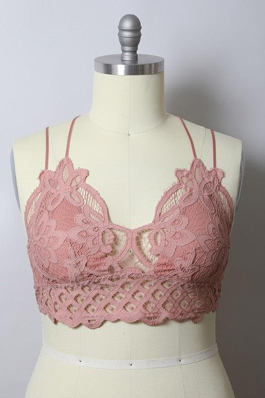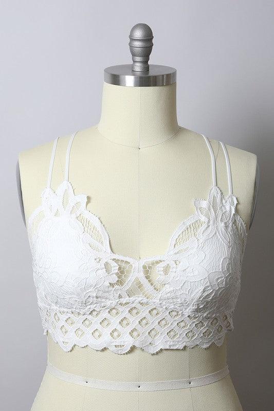 Curvy- Padded Crochet Lace Longline Bralette